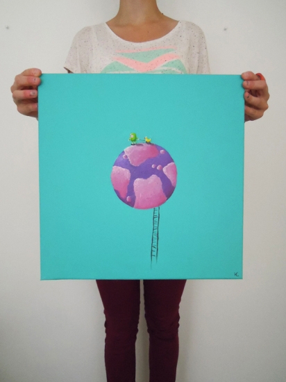 Little boy meets little girl Canvas 20x20 cm Watercolor